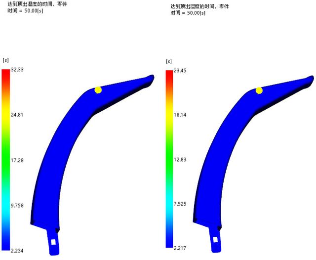 普通水路冷却时间:32S 随形水路冷却时间:23S